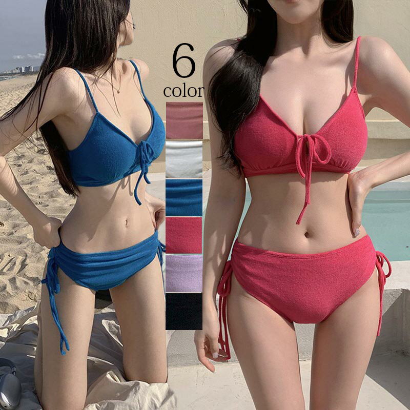 ホルターネック レディース 水着 リボン 盛れる ビキニ セット ノンワイヤー 無地 韓国風 カバー・・・