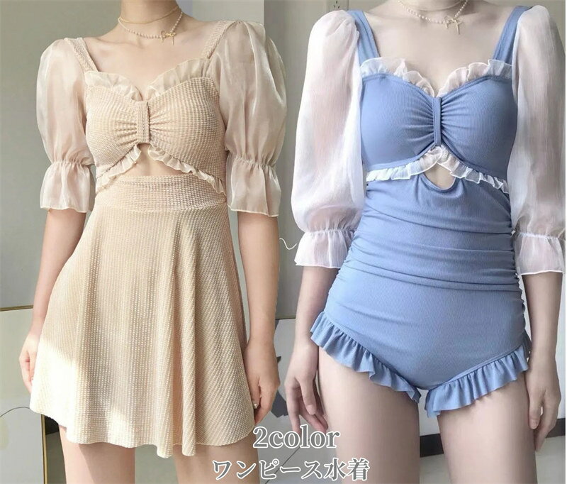 新作 2カラー レッド ブルー 水着 ワンピース スカート フレア フリル レディース水着 オフショ・・・