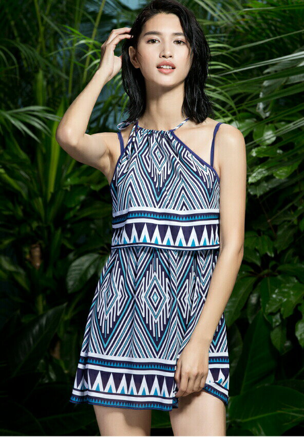 新作 レディス水着 エスニック柄 幾何柄 ワンピース ブルー 水着 幾何柄 抽象 オフショルダー ビ・・・