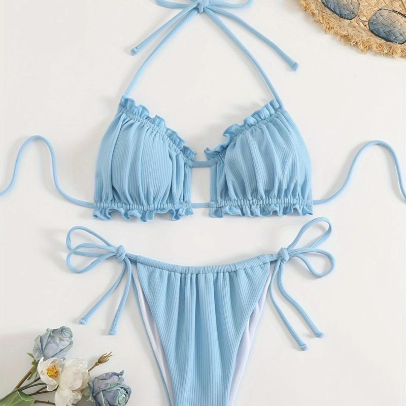 水着 レディース 女性用 無地 バンドゥ ビキニ セパレート スイムウェア 競泳用 練習用 ブルー ・・・