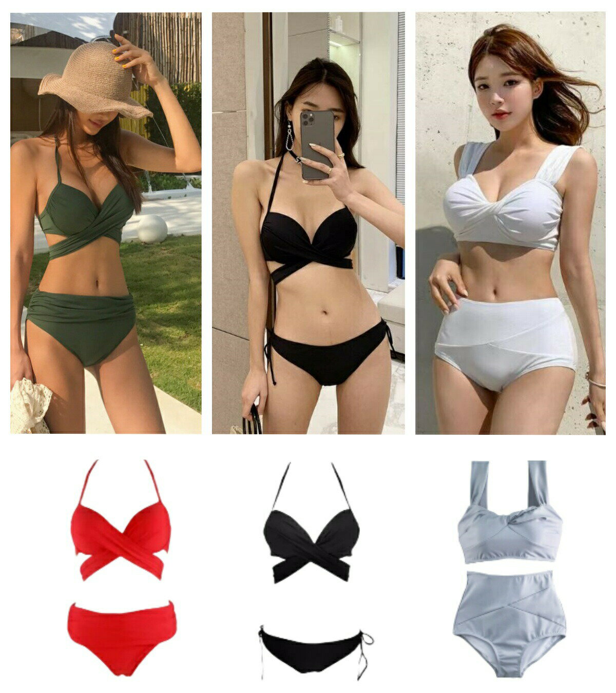 水着レディース セパレート クロスバンドゥ 無地 ビキニ 体型カバー ホルターネック ワイヤー入り ・・・
