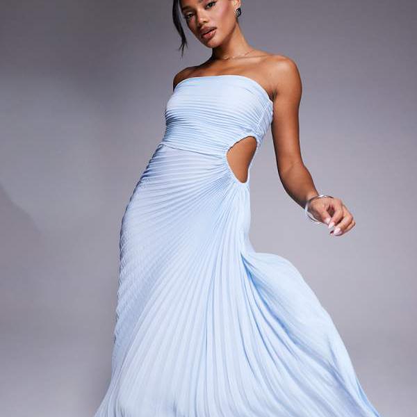 アリア・コーブのバンドゥオープンサイドプリーツマキシドレス(ベビーブルー) ワンピース レディース ・・・