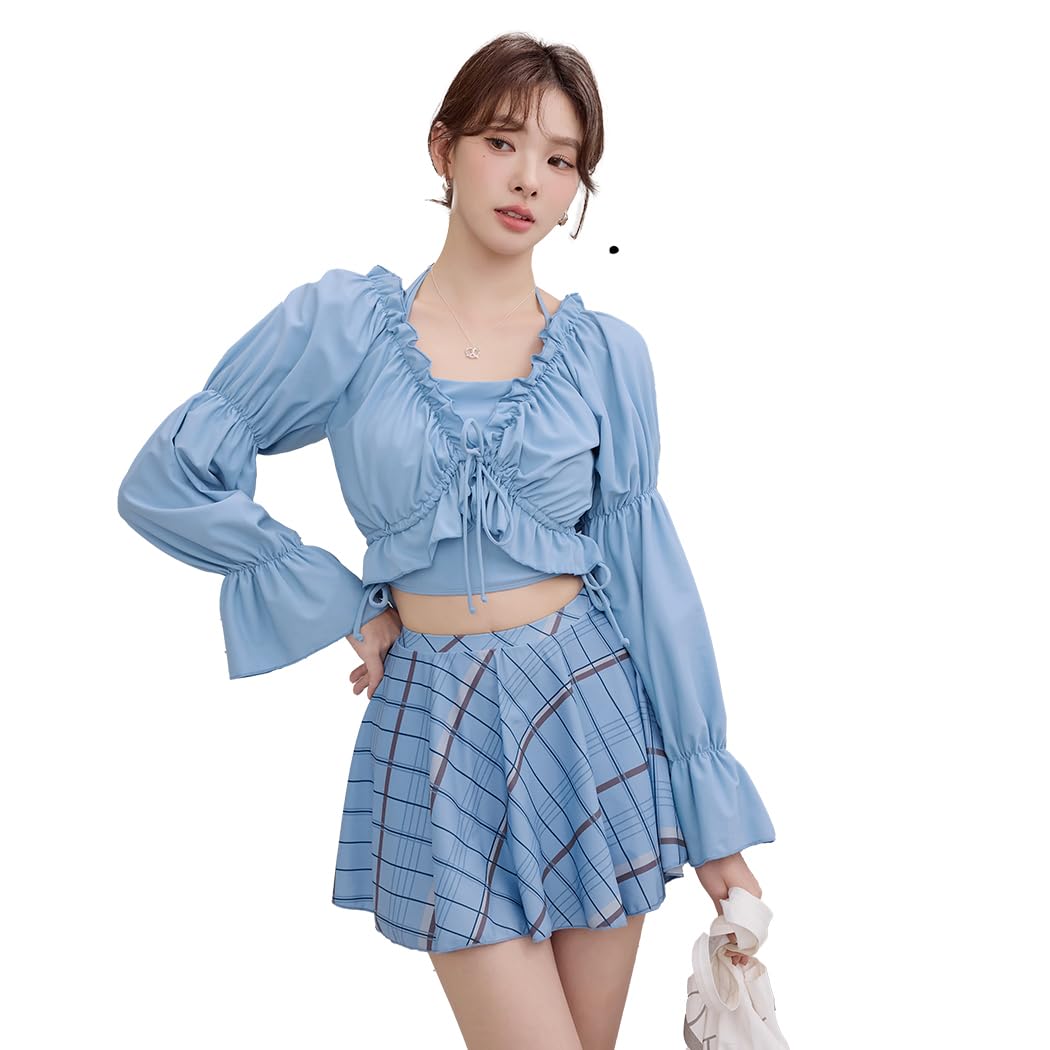 【送料無料】 水着 レディース バンドゥビキニ 4点セット 体型カバー UVカットギャザートップス ・・・