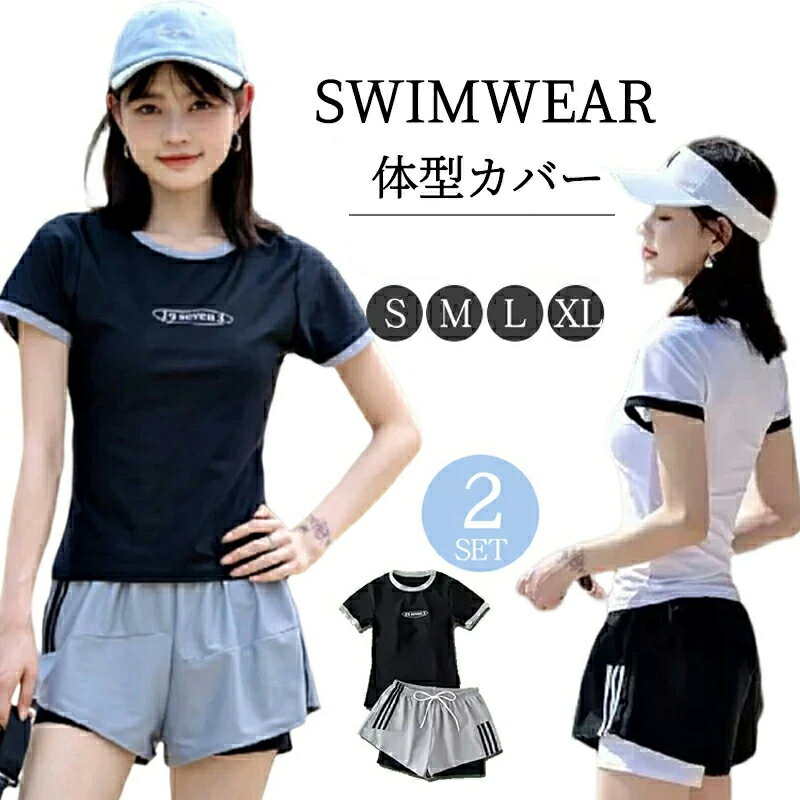 水着 レディース 体型カバー 2点セット おしゃれ 大学生 中学生 高校生 夏 ママ水着 スクール水・・・