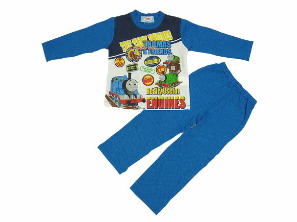 機関車トーマス長袖(裏起毛)子供パジャマ(110)(120)【秋】【冬】衿ブラック トーマス字入り