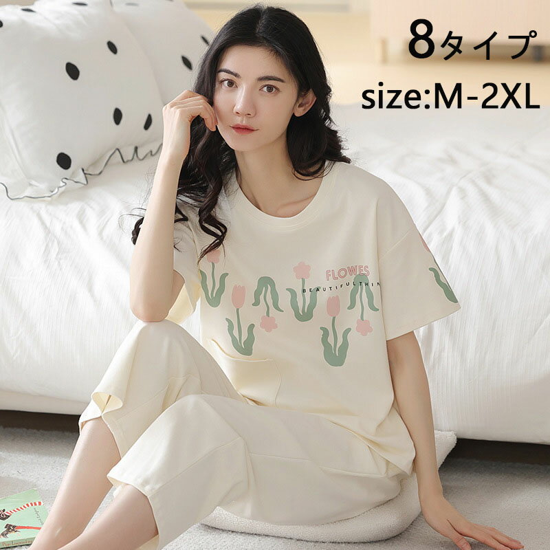 パジャマ レディース 半袖 夏 上下セット セットアップ ルームウェア パジャマ tシャツ 七分丈パ・・・
