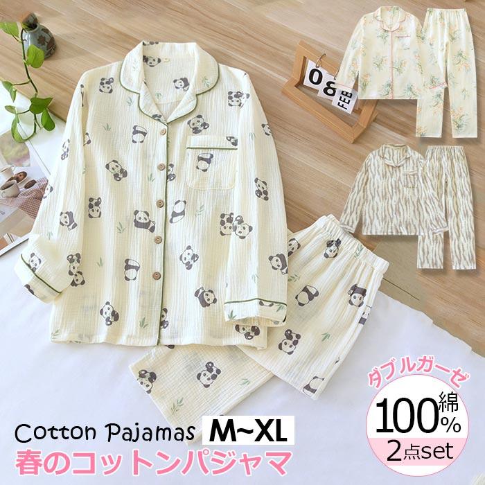パジャマ 前開き 長袖 ガーゼパジャマ レディース 春 ダブルガーゼ 上下セット 大きいサイズ 部屋・・・