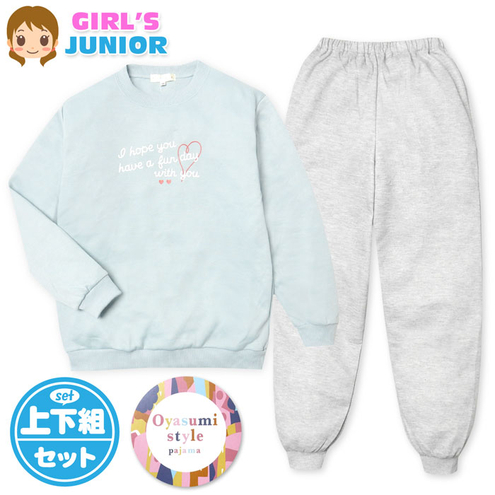 【送料無料】女児 ジュニア 長袖 パジャマ ダンボールニット 上下組 スウェット 丸首 ハート&ロゴ・・・