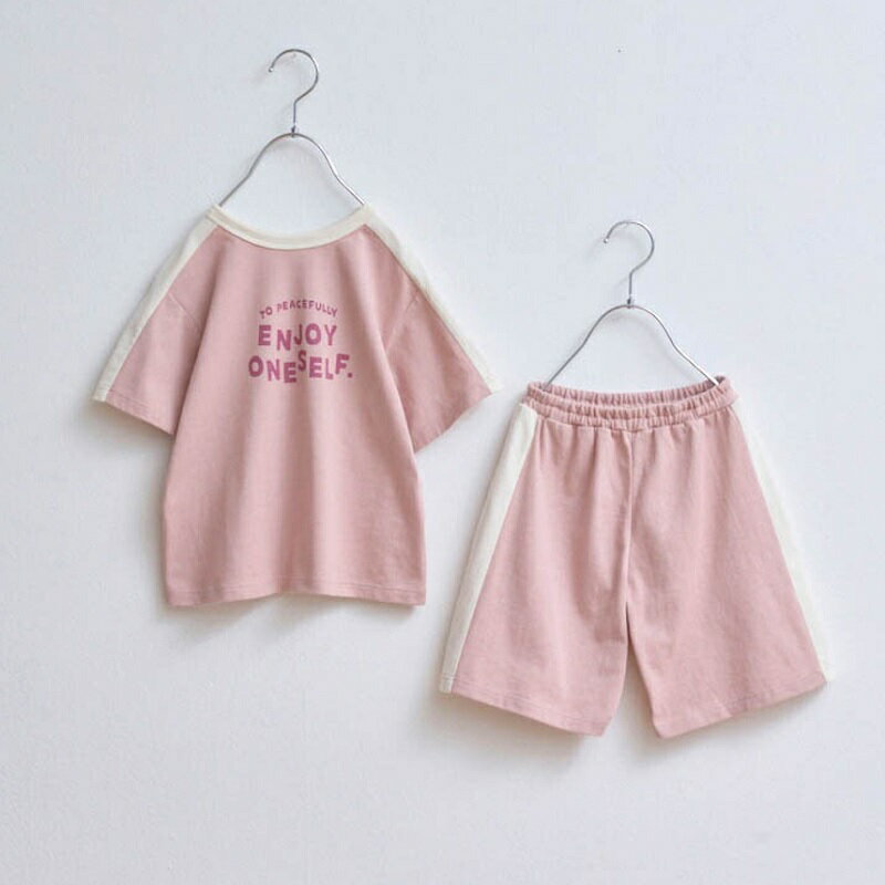 女の子 パジャマ 【文字柄】 【夏】 ピンク・サックス 半袖・半ズボン(ハーフパンツ) 綿100% ・・・