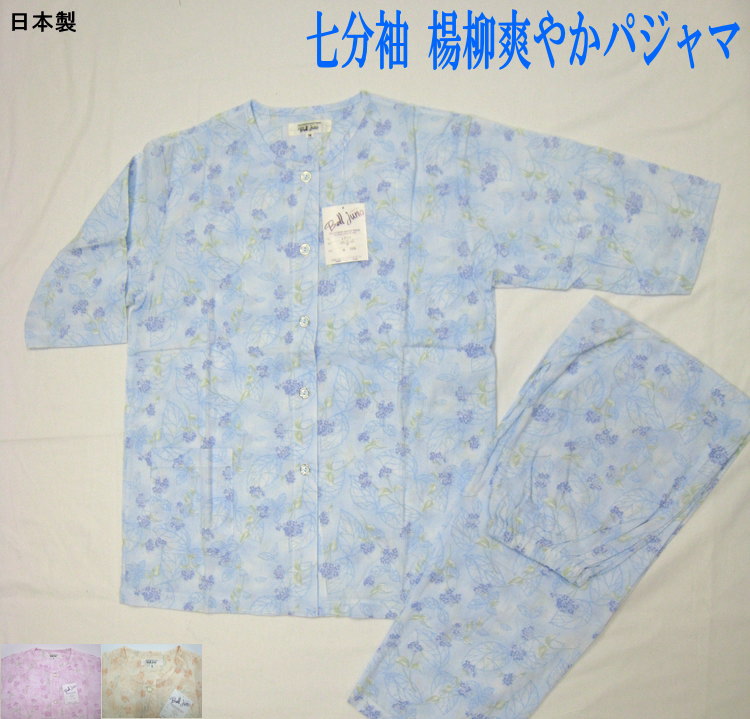 【夏用 7分袖】楊柳 レディース パジャマ S/M/L 49151 綿100% 薄手 夏用 婦人用 ・・・