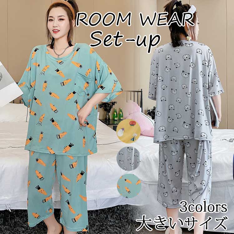 【送料無料】パジャマ レディース ルームウェア 上下セット 大きいサイズ 大きめ 半袖 夏 Tシャツ・・・