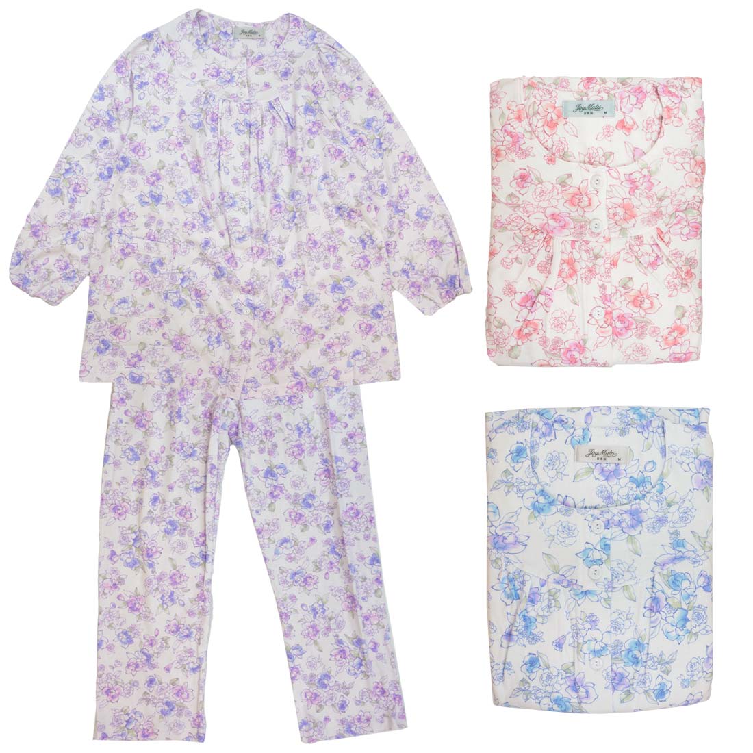 レディース パジャマ ねまき ネマキ 寝間着【花柄】 【春・秋】 ピンク・サックス・パープル M・L・・・