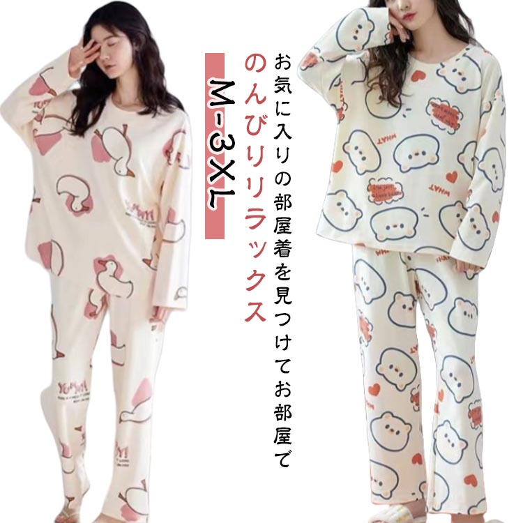 パジャマ レディース 春 夏 ルームウェア 長袖 上下セット 無地 春 かわいい 暖かい ゆったり ・・・