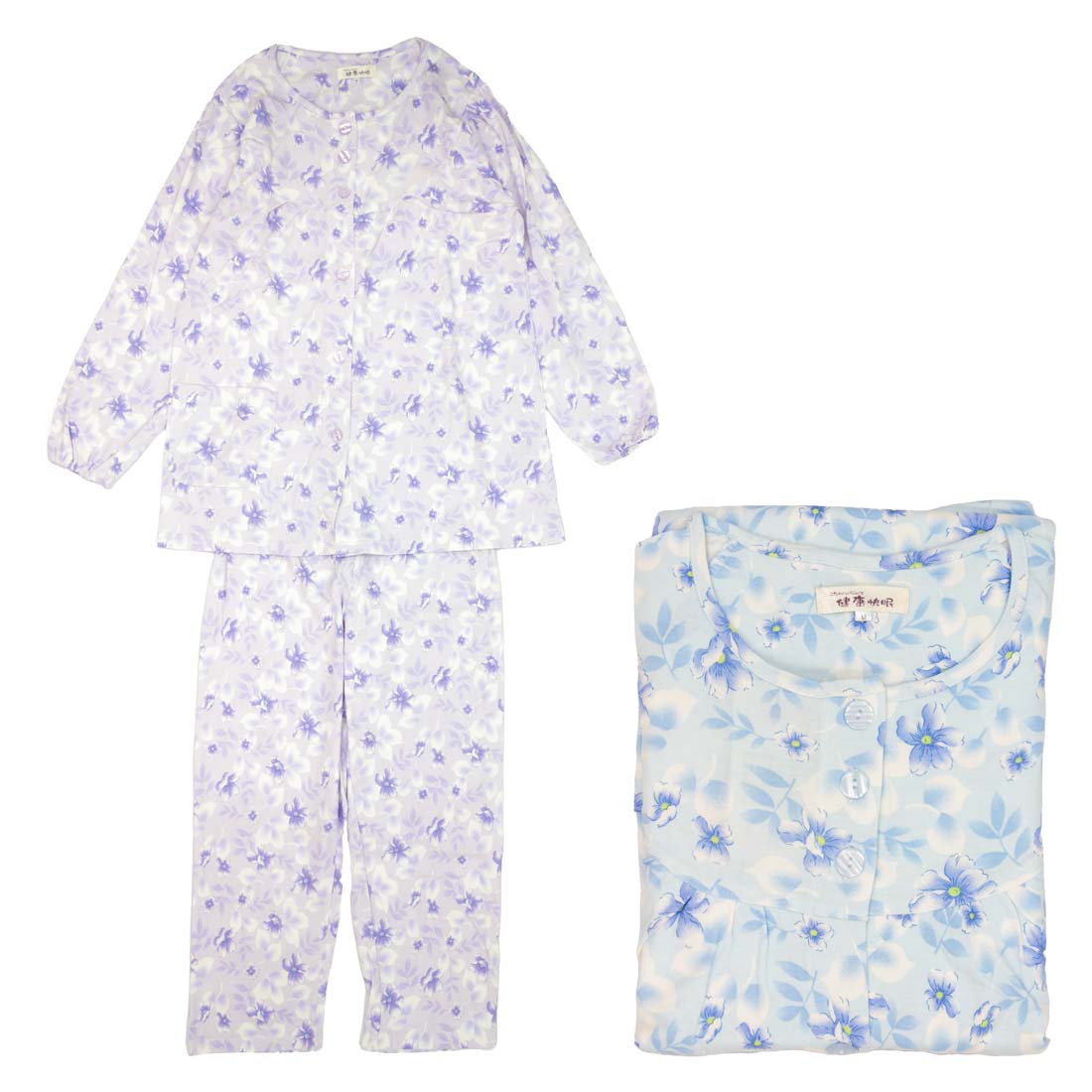 【送料無料】【全2色/6サイズ展開】ワンタッチのびのびストレッチパジャマ(婦人) S・M・L・LL・・・・