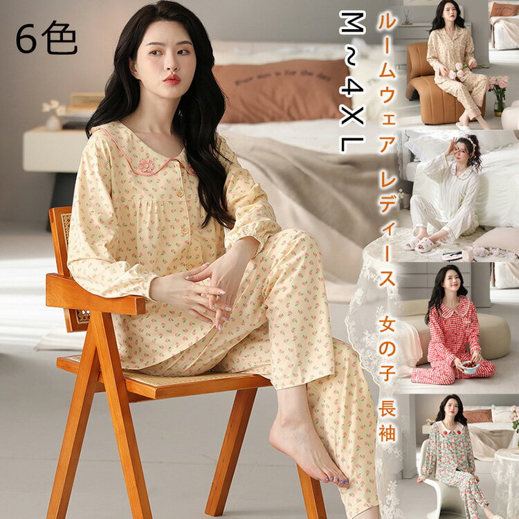 パジャマ レディース ルームウェア 上下セット 長袖 春秋用 秋冬用 春夏 ゆったり 大きいサイズ ・・・