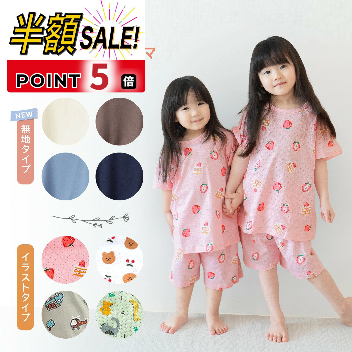 綿100% キッズ パジャマ 半袖 ハーフパンツ 薄手 涼しい メッシュ素材 男の子 女の子 子供部・・・