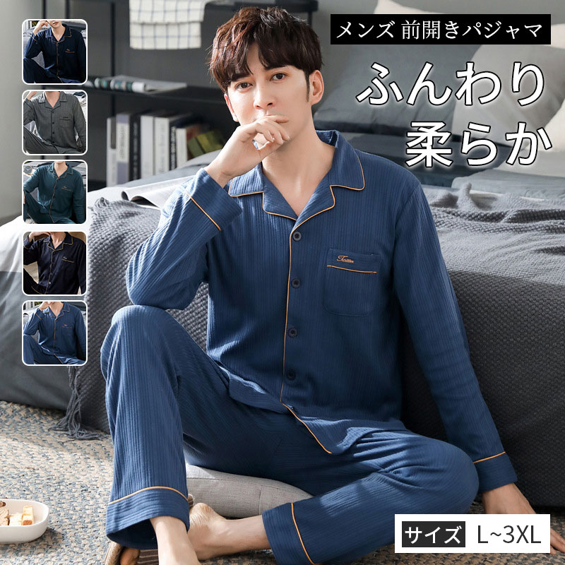 パジャマ メンズ 長袖 綿 前開き 襟付き 長ズボン 春 夏 通気 吸湿 寝巻き 柔らかく軽い薄手の・・・