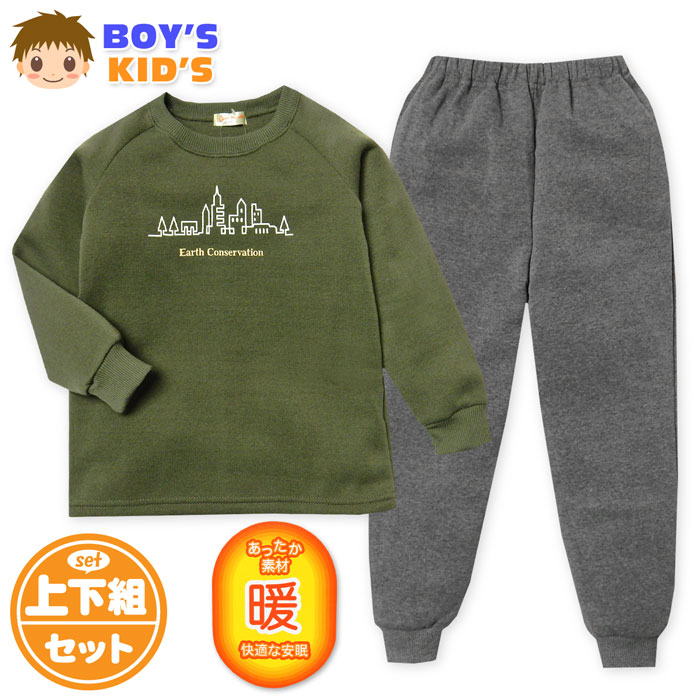 【送料無料】男児 キッズ 裏起毛 長袖 パジャマ 上下組 あったか素材 保温性 スウェット ロゴプリ・・・