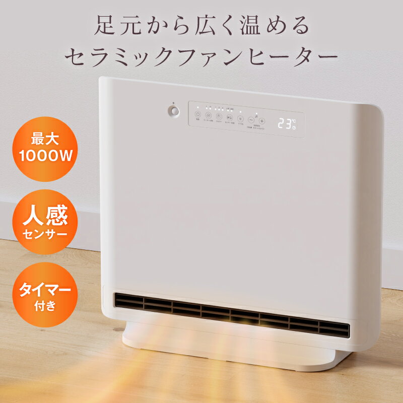 セラミックヒーター SKJ-KT100PTC 家電 オフタイマー 暖房 ファンヒーター 人感センサー・・・