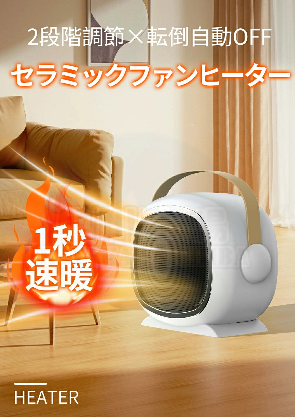 ヒーター セラミックヒーター 2秒速暖 700W/1200W 2段階調節 電気ストーブ 足元 オフィ・・・