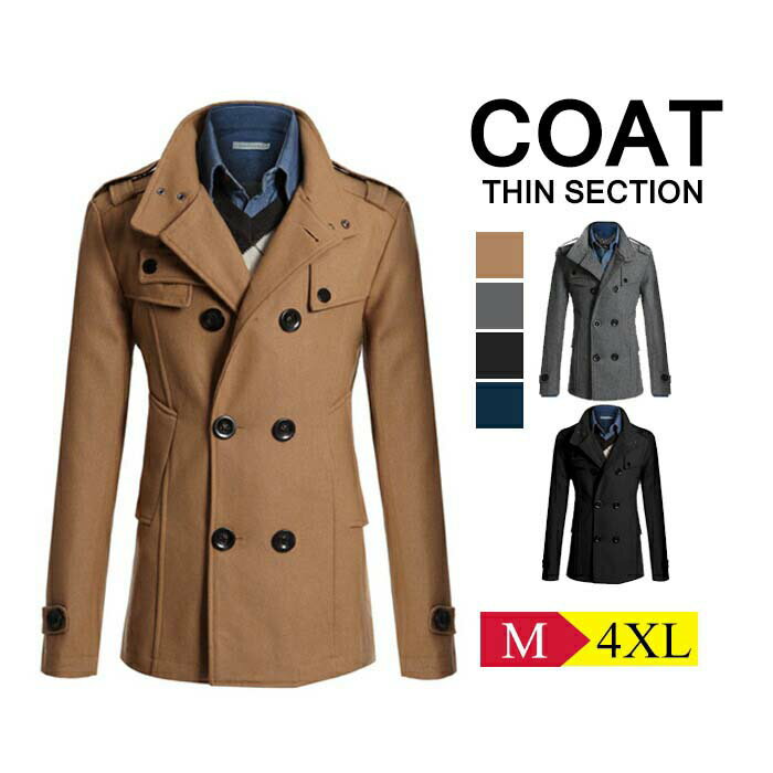 トレンチコート メンズ 秋 ハーフコート コットン 英国 ピーコート ウール ショート 50代 春 ・・・