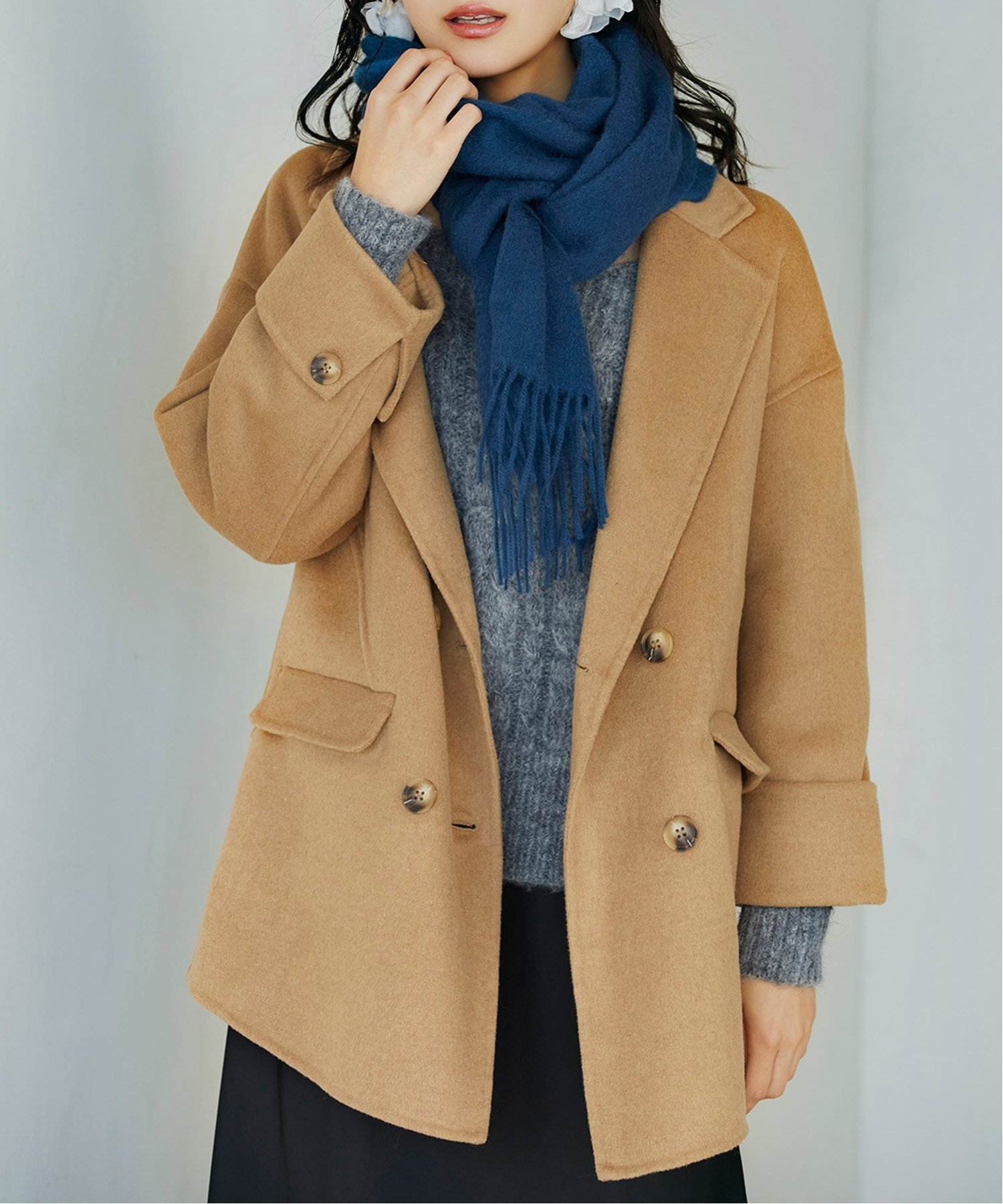 SAISON DE PAPILLON ウール混ダブルフェイスPコート セゾン・ド・パピヨン ジャケッ・・・