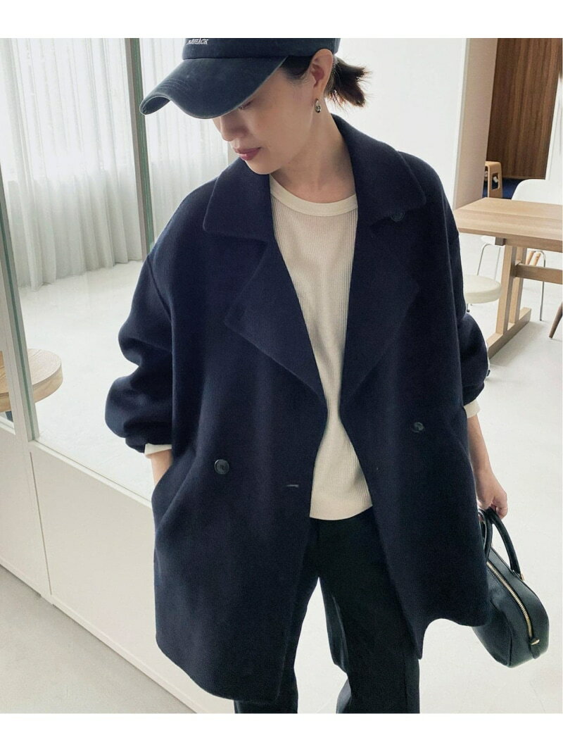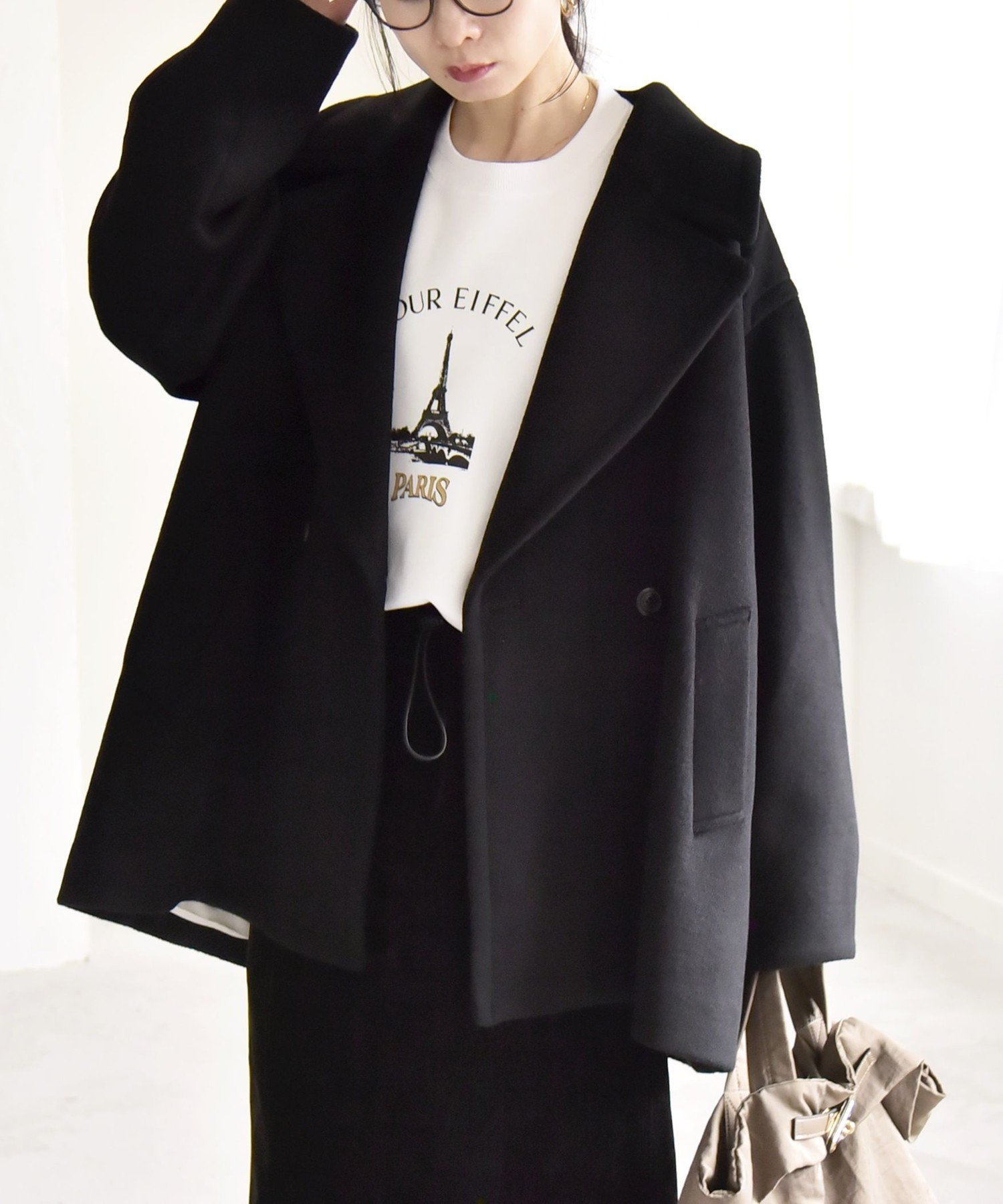 quaranciel quaranciel: PURE WOOL ダブルブレスト ハーフ Pコート ・・・