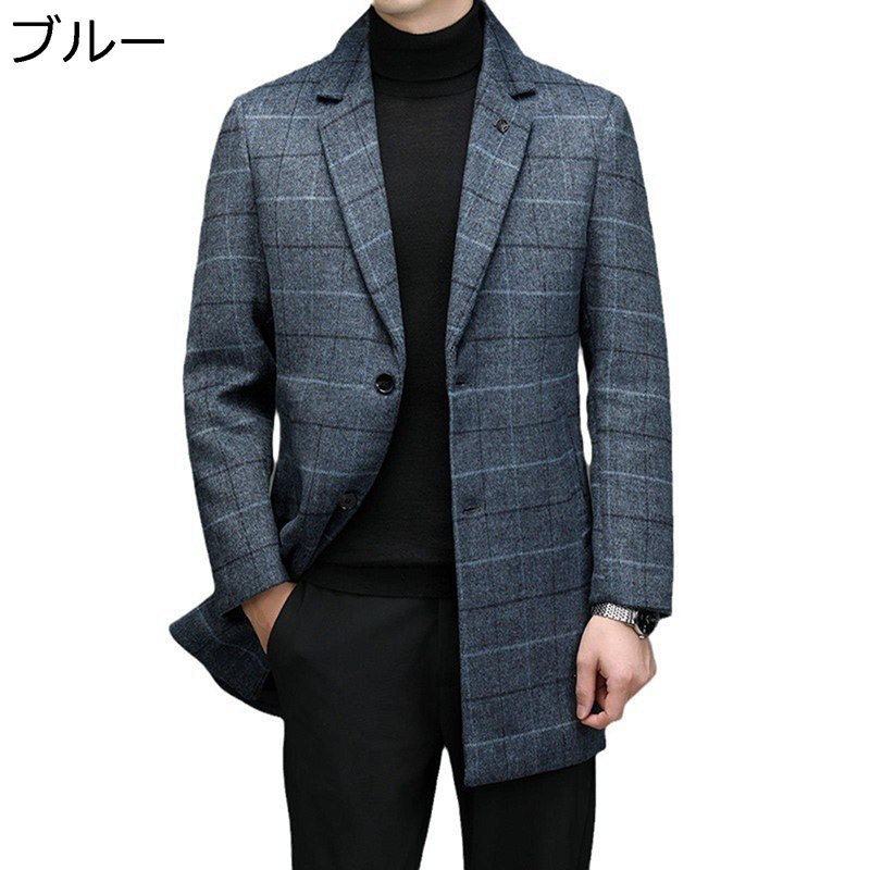 ラシャジャケット メンズ Pコート チェスターコート チェック 格子柄 テーラード 中長丈 秋冬服 ・・・