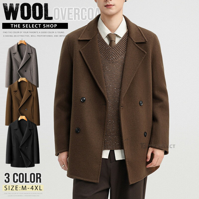 Pコート メンズ 冬 ビジネス カジュアル ジャケット アウター ピーコート ショート丈 ウール/ジ・・・
