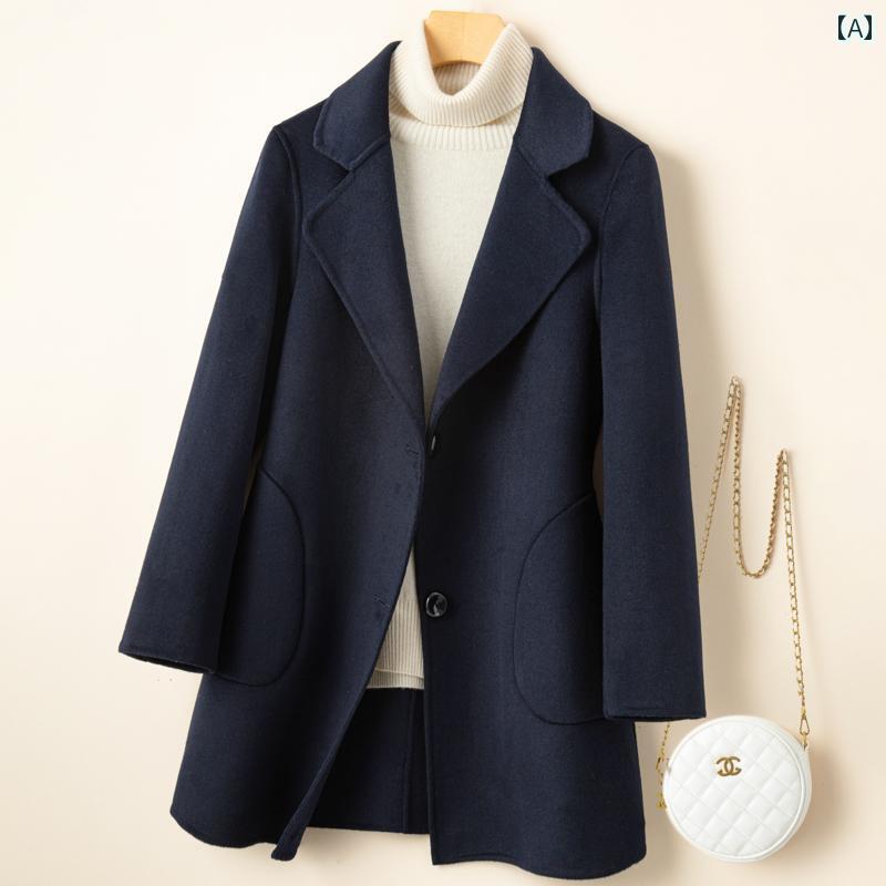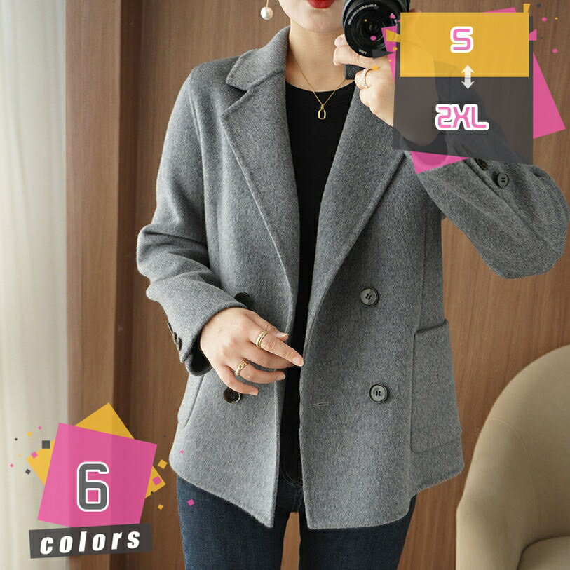 レディース コート ピーコート 秋冬用 ダブルフェイス カシミヤコート ウールツイード 素材の ミド・・・