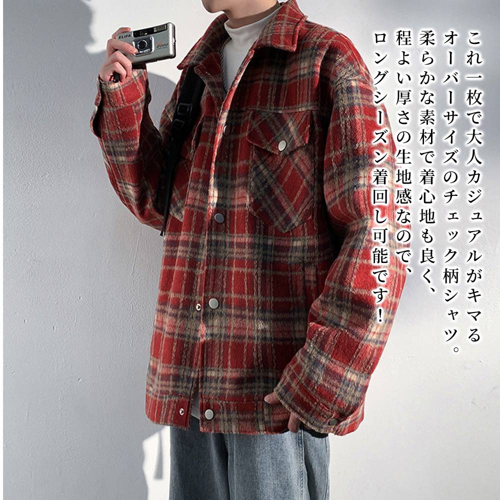 【\クーポン利用で20%OFF!/】 ステンカラーコート メンズ チェック柄オーバーシャツ ミドル ・・・