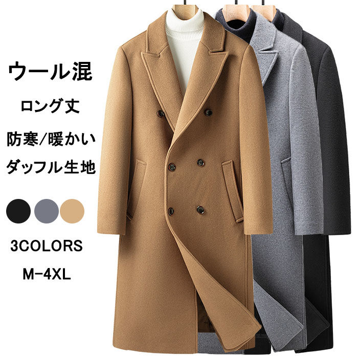 送料無料 ビジネスコート メンズ ウールコート 厚地 メンズ ロングコート シンプル ダブルコート ・・・
