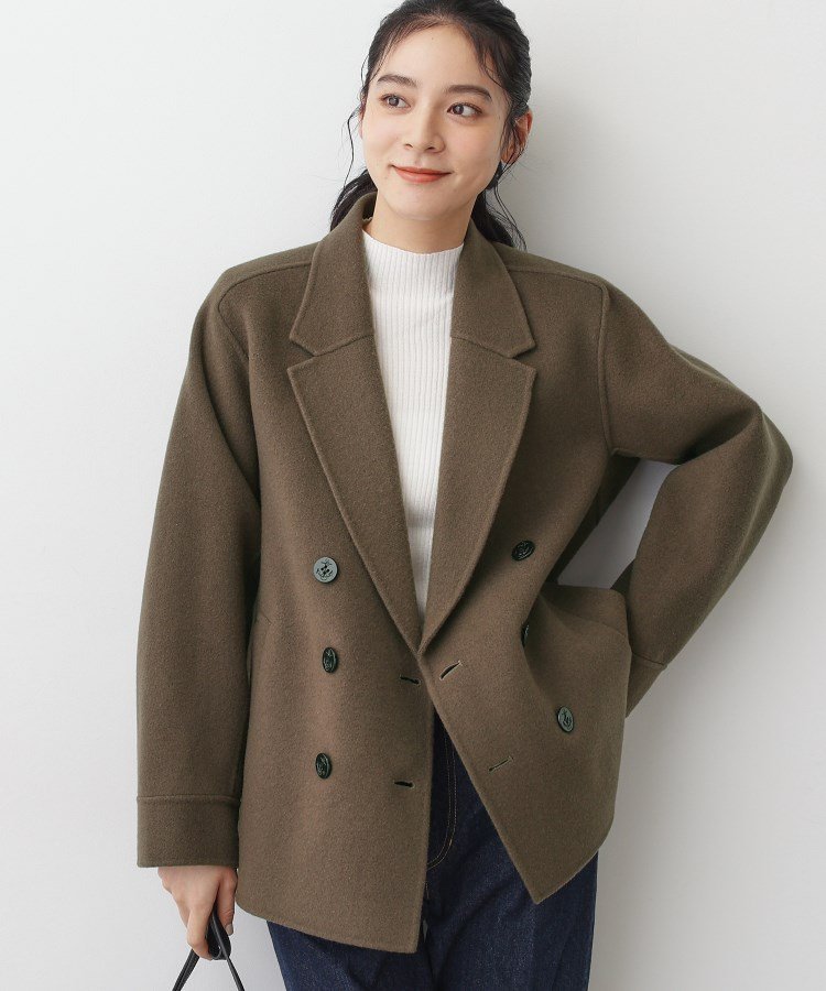 Dessin 【洗える】ウール混リバーメルトンコート デッサン ジャケット・アウター ピーコート ネ・・・