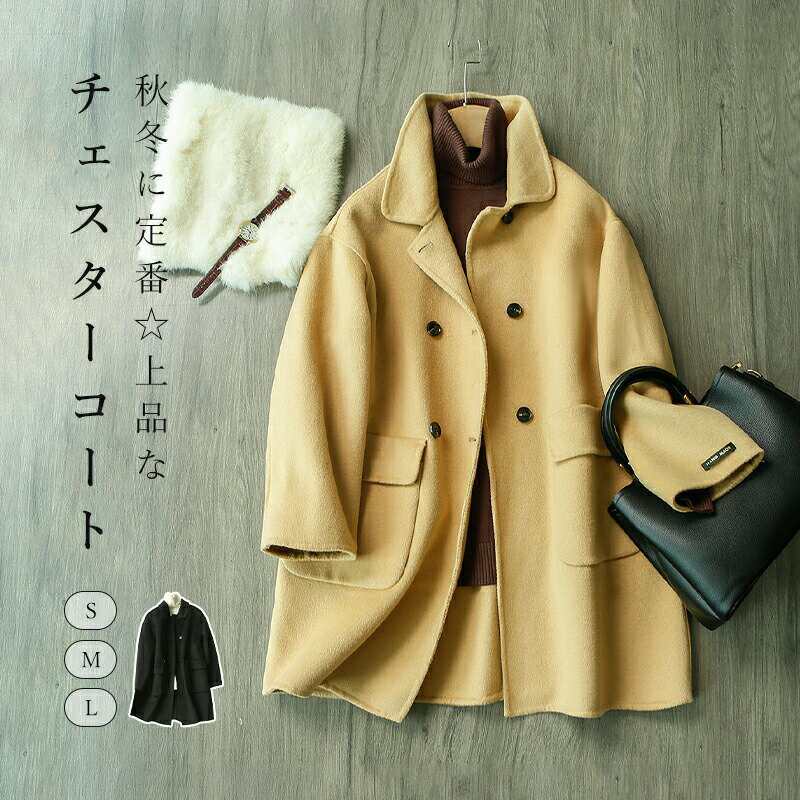コート レディース リバーウールコート 冬 チェスターコート ロング丈 セミロング きれいめ おしゃ・・・