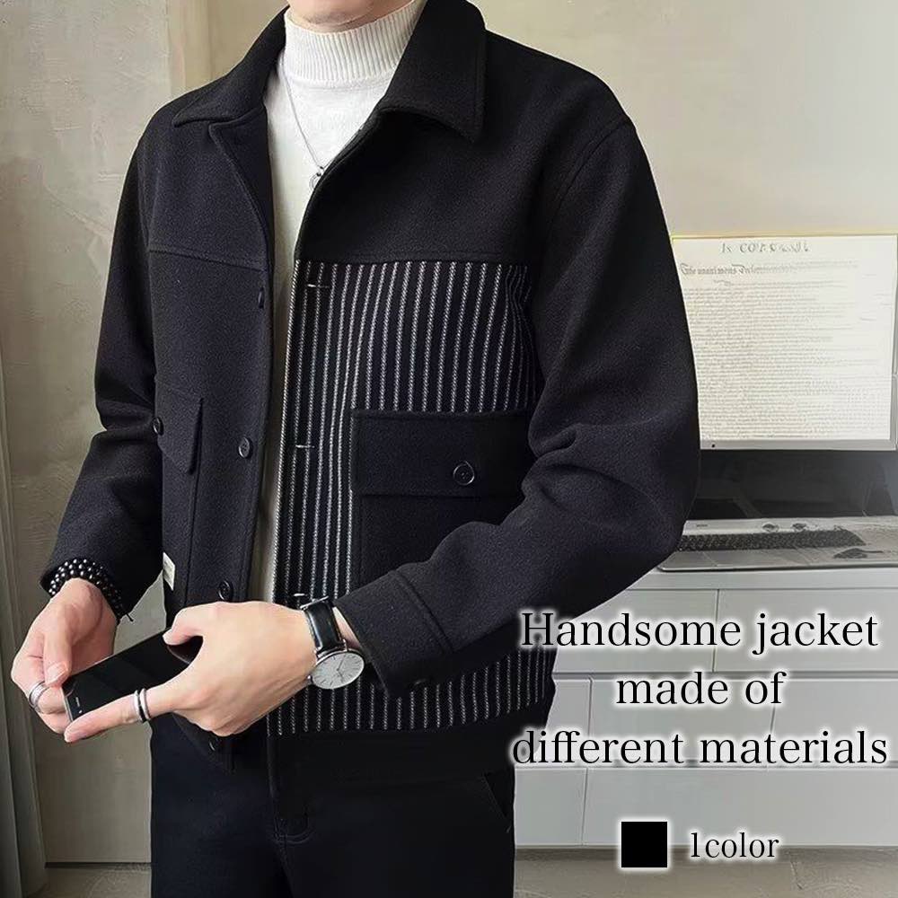ステンカラーコート メンズ 異素材ハンサムジャケット ミドル ピーコート 50代 ロング スタンドカ・・・