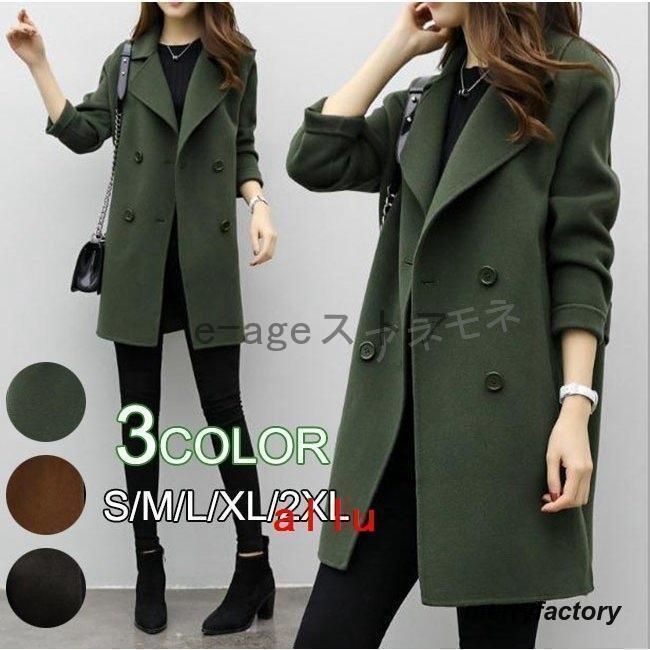 チェスターコート レディース 大きいサイズ ピーコート ロング丈 秋冬アウター 無地 ウールコート ・・・