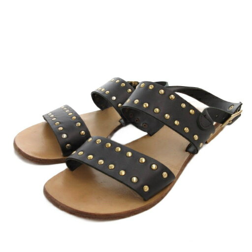 【中古】FABIO RUSCONI(ファビオルスコーニ) サンダル アウトソール張替済 黒 レザー