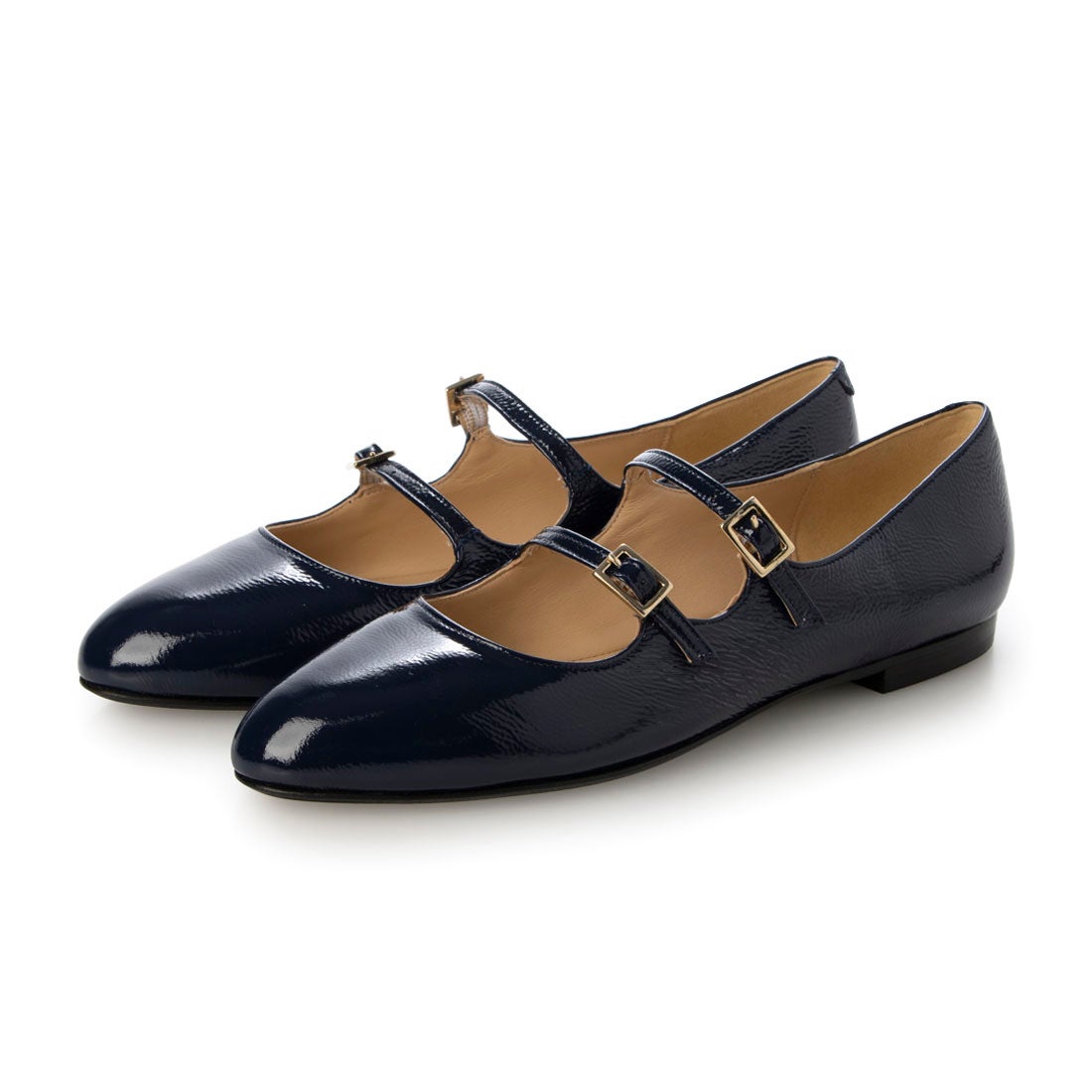ファビオルスコーニ FABIO RUSCONI ダブルストラップサケットバレエ (ネイビーエナメル)