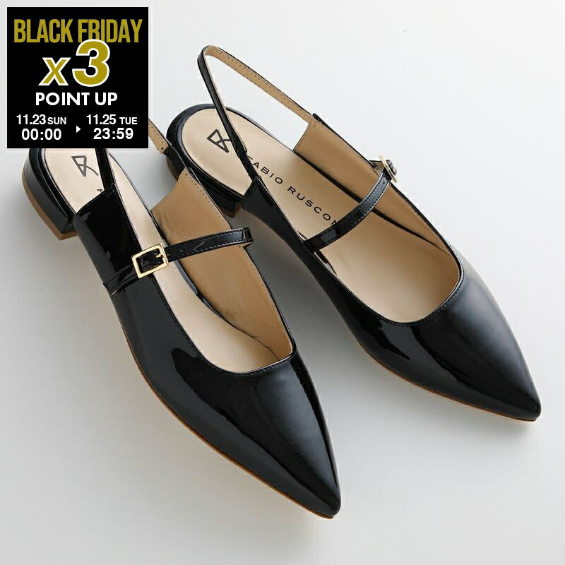 ファビオルスコーニ FABIO RUSCONI ポインテッドトウフラットパンプス (ブラックエナメル・・・