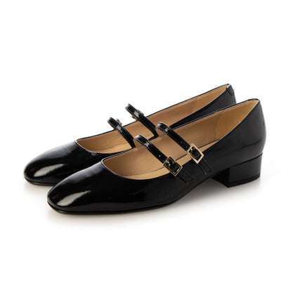 ファビオルスコーニ FABIO RUSCONI ラウンドトウダブルストラップパンプス (ブラックエナ・・・