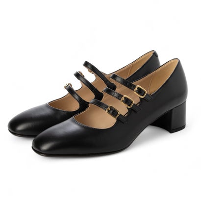 ファビオルスコーニ FABIO RUSCONI スクエアトウトリプルストラップパンプス (ブラック)