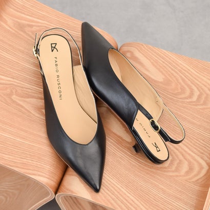 ファビオルスコーニ FABIO RUSCONI キトゥンヒールバックバンドパンプス (ブラックエナメ・・・