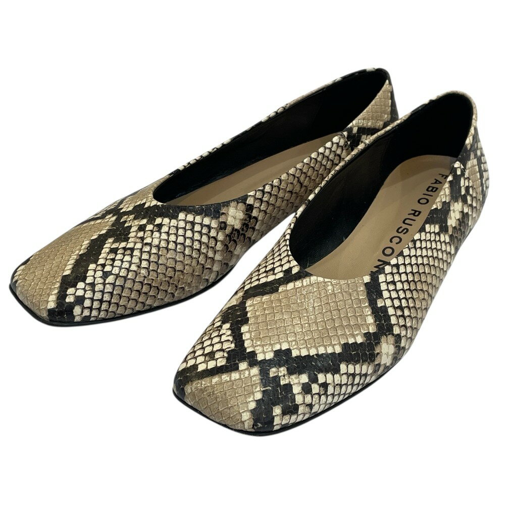 【中古】美品 FABIO RUSCONI ファビオルスコーニ パイソン型押し スクエアトゥ フラット・・・