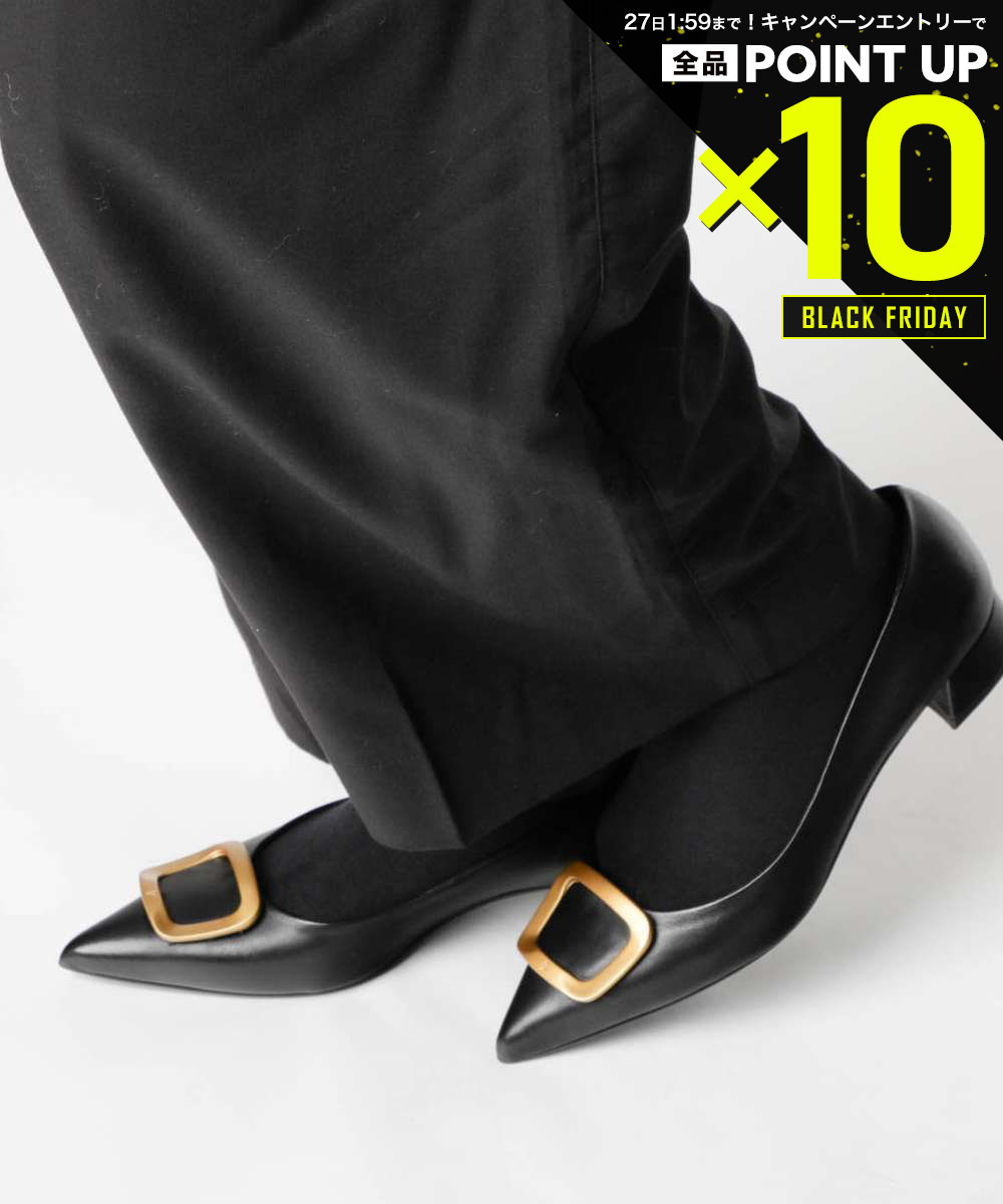 FABIO RUSCONI◆4.5cmヒール◆スクエアトウメタルバックルパンプス/ファビオ ルスコー・・・