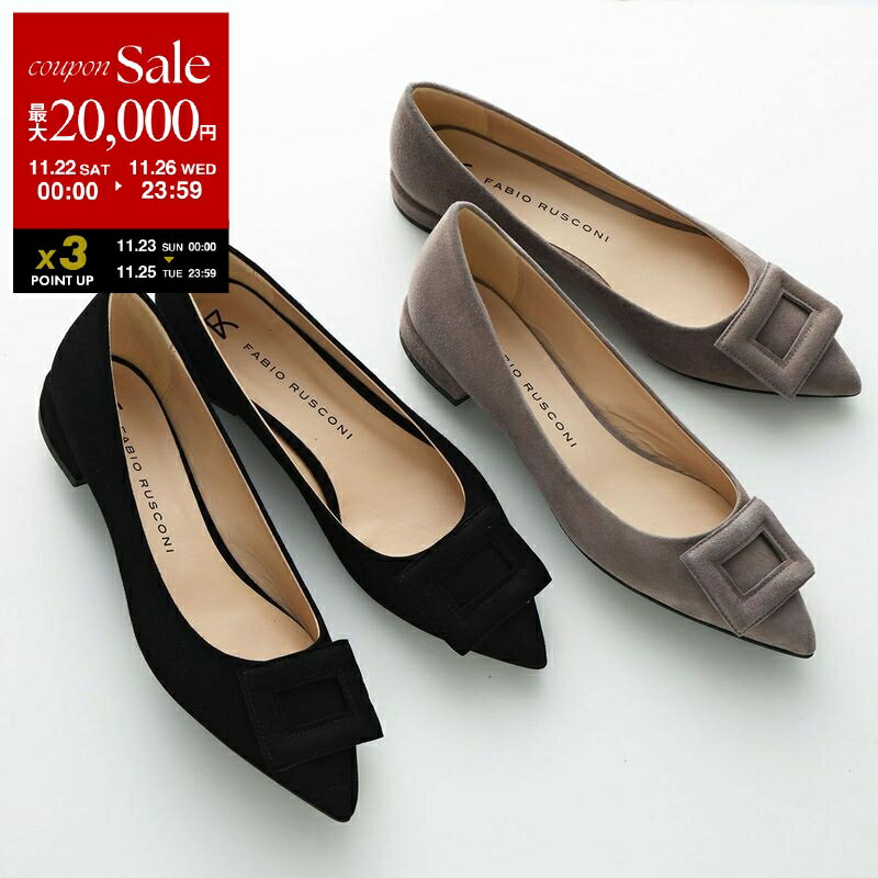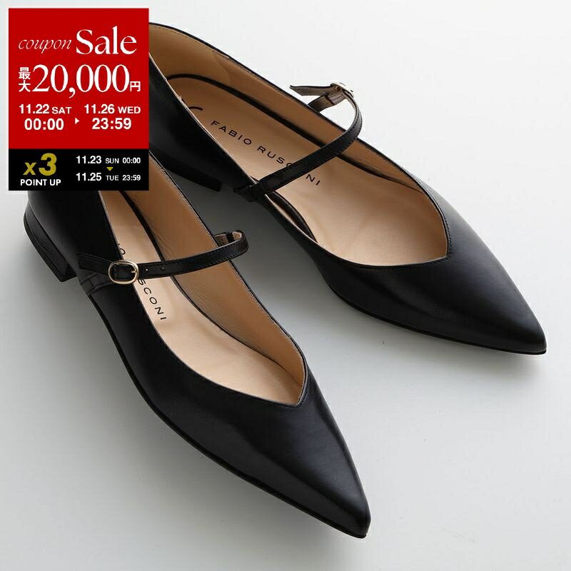 ファビオルスコーニ FABIO RUSCONI レザー バックル フラット パンプス F6082スク・・・
