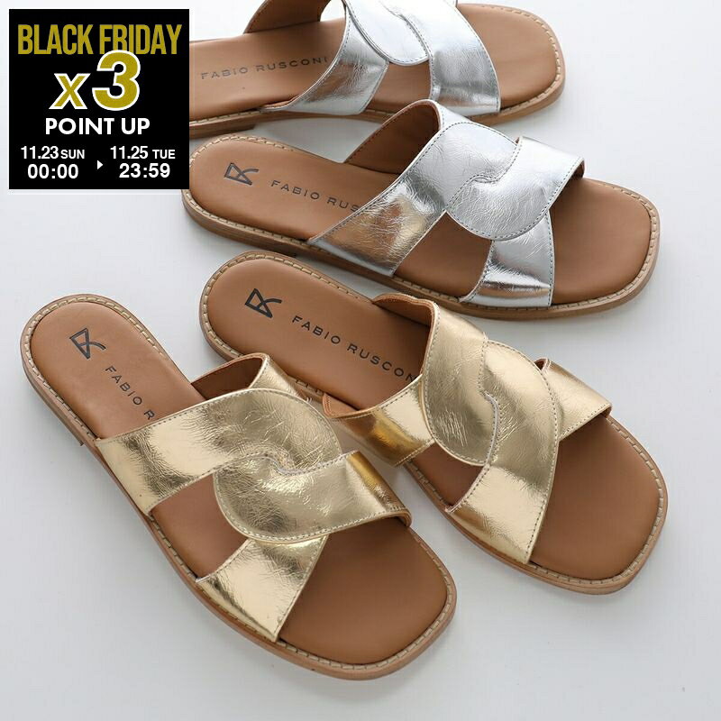 ●ファビオルスコーニ FABIO RUSCONI クロスフラットサンダル (プラチナゴールド)