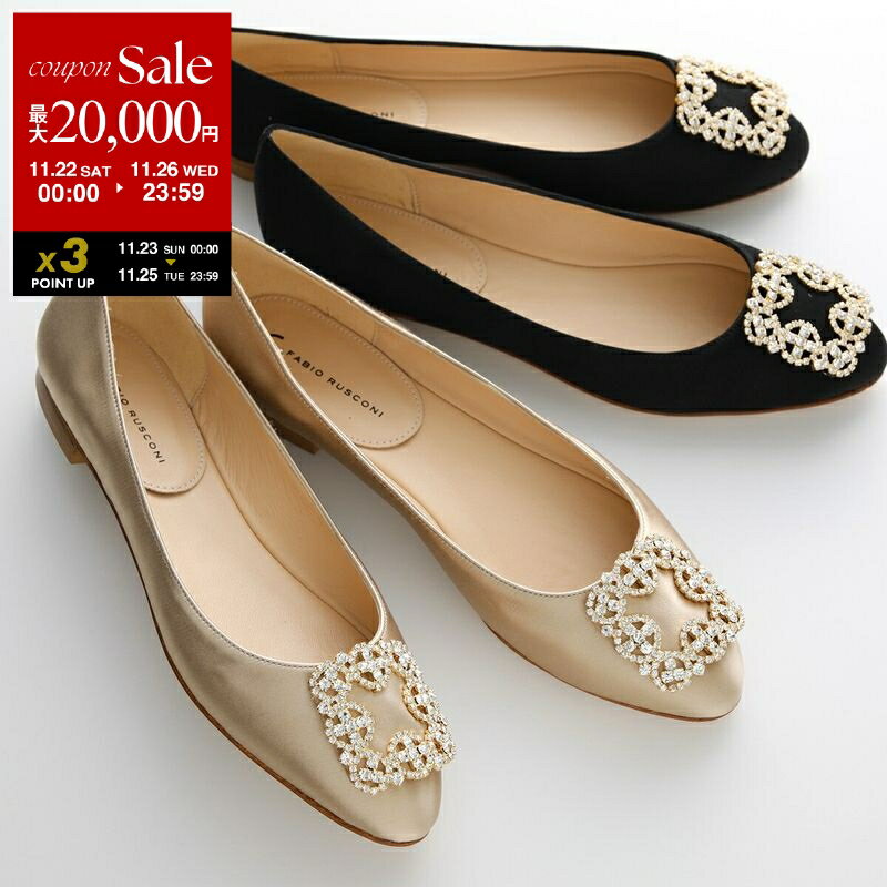 ●ファビオルスコーニ FABIO RUSCONI フラットビジュー付きパンプス(ブラック)
