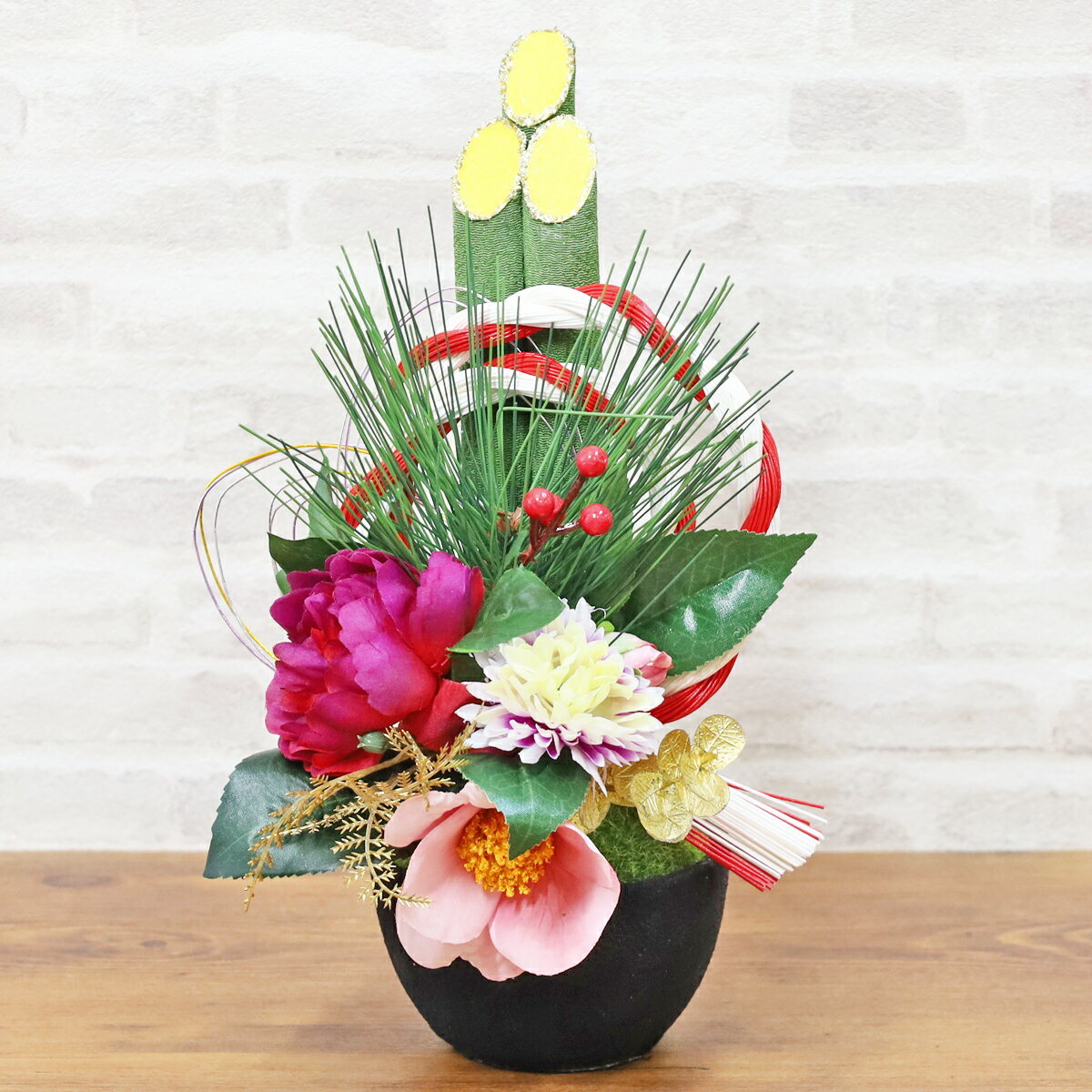 造花 門松ポットにしめ縄を合わせたアレンジ お正月 シルクフラワー 玄関飾り 正月飾り CT触媒 光・・・