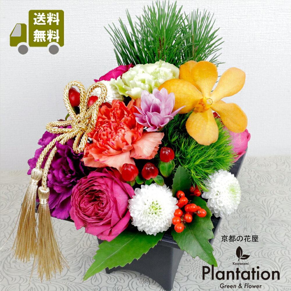 送料無料 迎春プチ生花アレンジ 新春 お年賀 迎春 お歳暮 花 アレンジメント 正月