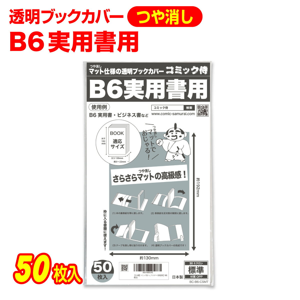 透明 ブックカバー つや消しマット 実用書 B6判 50枚 日本製【コミック侍】着後レビューで100・・・